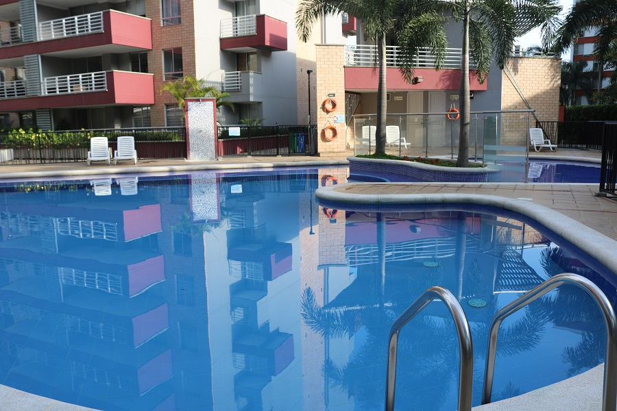 SE VENDE APARTAMENTO En la Flora cerca a Centro Empresa, en conjunto residencial piso 3 con ascensor, 90 mts2, sala, comedor con balcón, 2 habitaciones con opción de 3 habitación, 2 baños, cocina integral, zona de oficios, 1 parqueadero cubierto, estrato 5, salón social, piscinas, sauna, jacuzzi, zona para niños, vigilancia 24 horas, fresco e iluminado, fácil acceso, cerca a parques, administración $220.000.